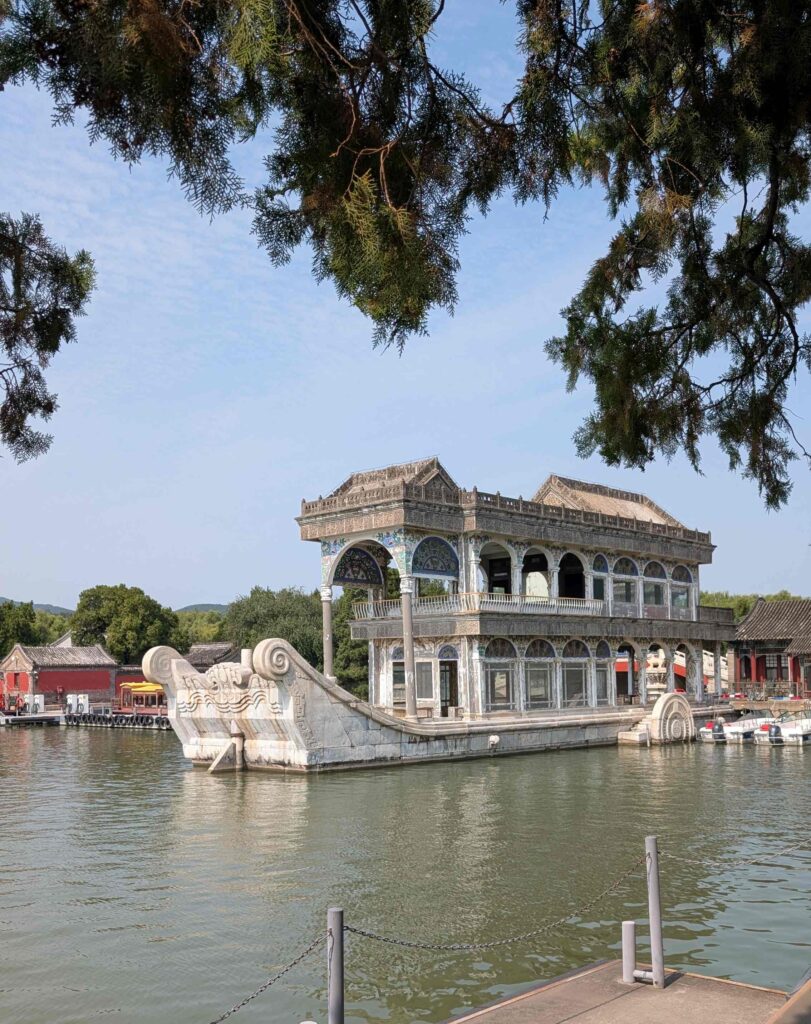 Heute besuchten wir den Sommerpalast der chinesischen Kaiser. Er befindet sich in einer großen Gartenanlage mit einem See und einem 728 m langen überdachten Wandelgang aus Holz.