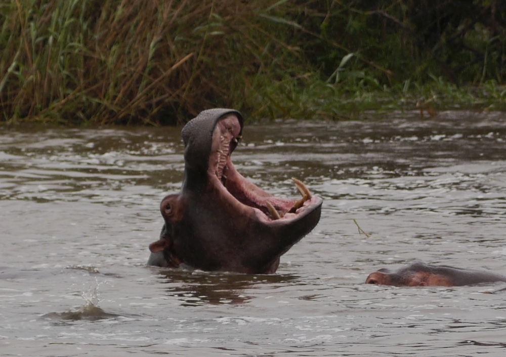 Am Sonntag ging es dann mit dem Flugzeug nach Durban und weiter mit dem Bus nach San Lucia. Dies liegt im Südosten des Landes unweit der Grenze zu Mosambik. Nachmittags gabe es dann eine Bootsfahrt (leider im Regen), um Krokodile und Flusspferde zu beobachten. Krokodile haben wir keine gesehen, mit den Flusspferden hatten wir mehr Glück.