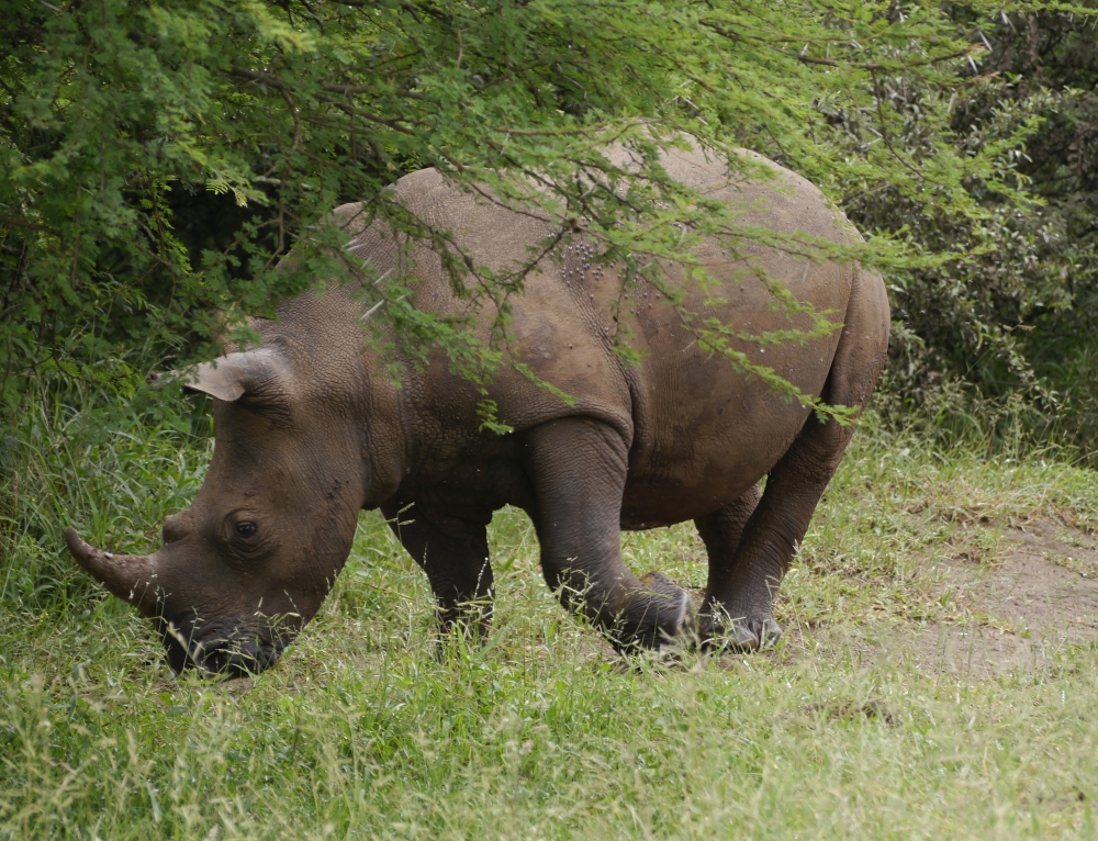 Als wir schon nicht mehr dran glaubten, trollte sich eine Familie Breitmaulnashörner über den Weg.