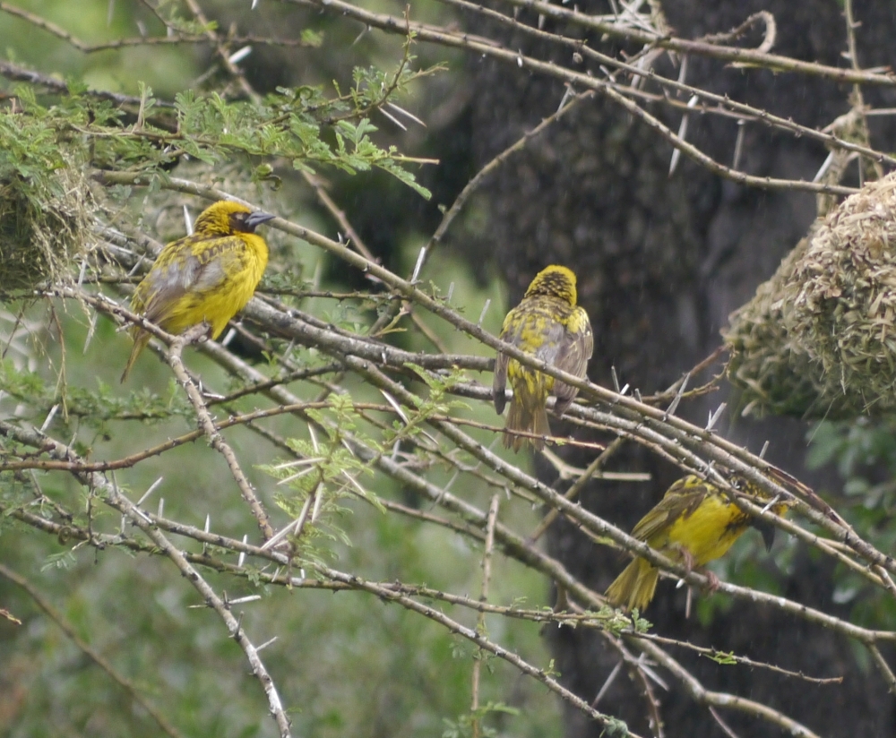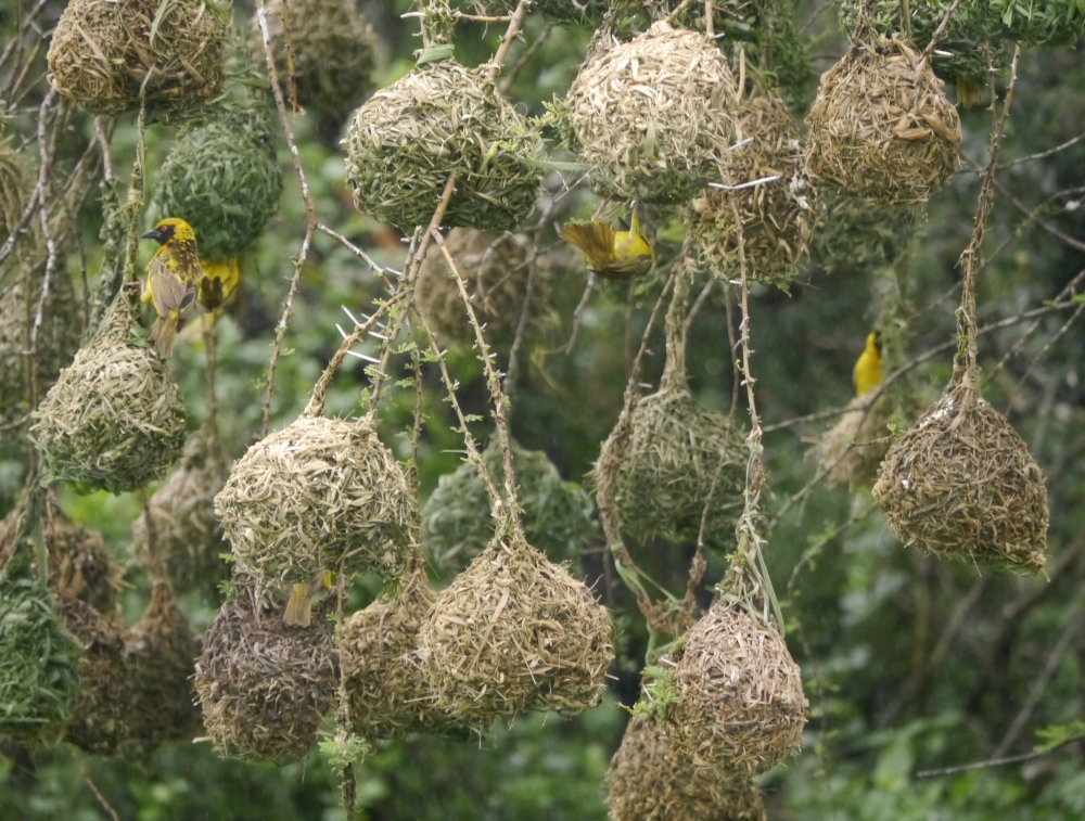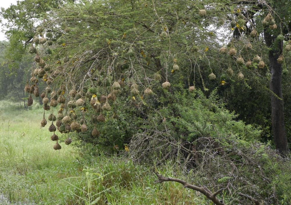 Eine Kolonie Webervögel konnten wir bewundern. Hier bauen die Männchen die Nester, und die Weibchen suchen sich dann das schönste aus.