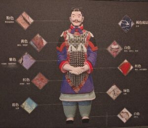 Ursprünglich waren alle Figuren bemalt, die Farbe hat sich nach der Ausgrabung aber leider schnell zersetzt.