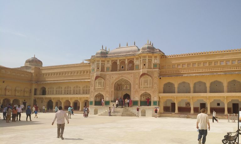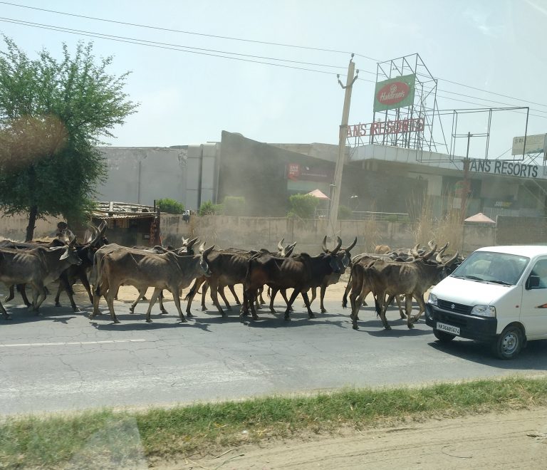 Gestern sind wir von Delhi nach Jaipur, der Hauptstadt Radjasthans, gefahren. Für die ca. 250 km braucht man locker 6 Stunden. Autofahren in Indien ist kein Vergnügen – Linksverkehr, rücksichtsloses fahren, alles mögliche Getier neben und auf der Straße (Kühe, Affen, Ziegen, Kamele, Elefanten,…). Es wird riskant überholt und das einzige immer funktionierende Bauteil an jedem Fahrzeug ist die Hupe.