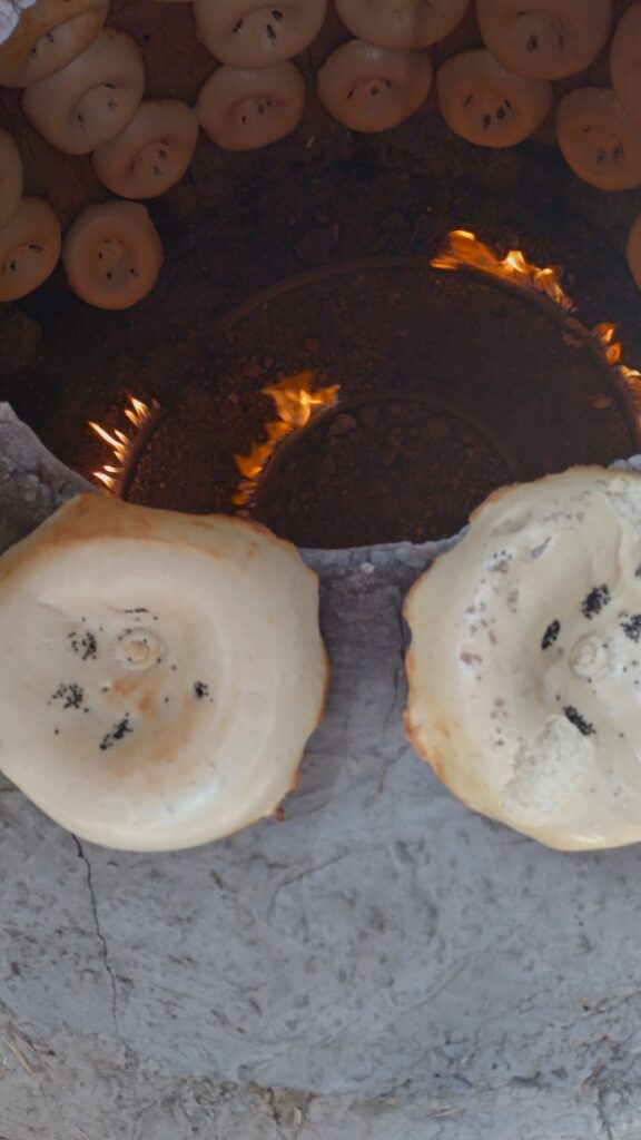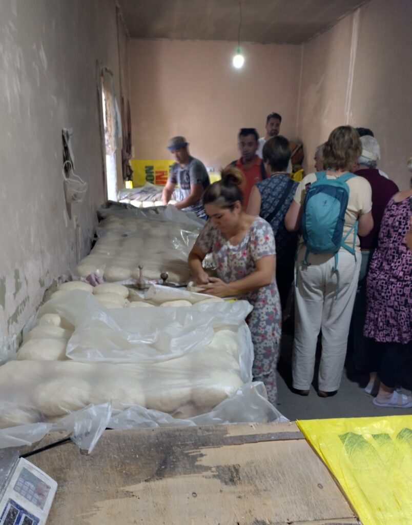Am Morgen besuchten wir eine traditionelle usbekische Bäckerei. Hier wird das Brot von Hand geformt und in einem Tonofen gebacken.