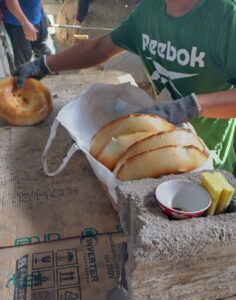 Wir durften das frisch gebackene Brot probieren – es schmeckte lecker.