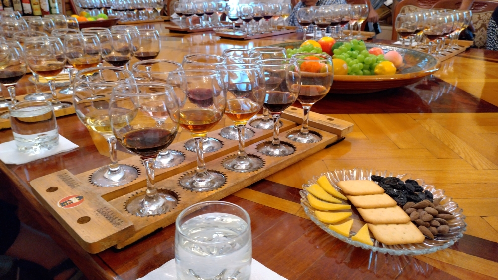 Der Tag ebdete mit einer Weinverkostung – usbekische Weine und Weinbrände. Die Weine sind recht süß, erinnern etwas an Madeira oder Portwein.