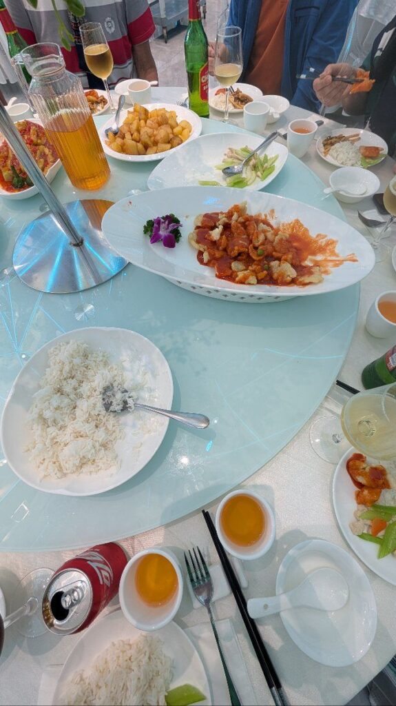 Am Ziel in Yichang gab es in einer schicken Feier-Lokation noch leckeres Abendessen, ehe wir im Kreuzfahrtschiff auf dem Yangtze eincheckten.