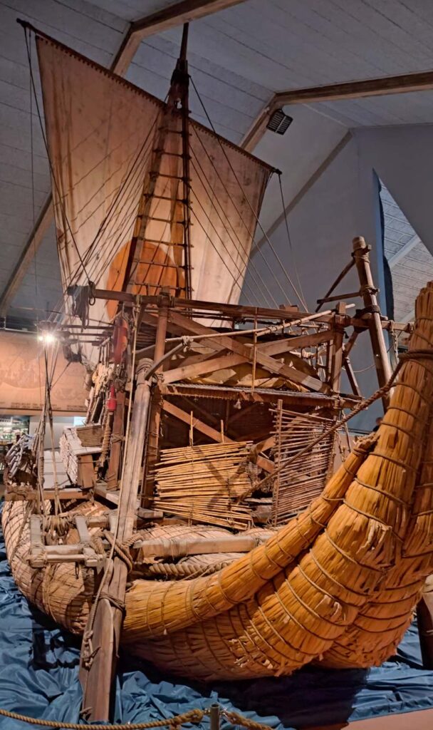Heute Vormittag haben wir zwei sehr schöne Museen besucht, die sich mit der Norwegischen Entdeckergeschichte befassen. Da wäre zum einen das Kon-Tiki-Museum, welches Thor Heyerdahl gewidmet ist. Es sind hier originale Nauchbauten der Schiffe Kon Tiki, Ra und Ra-2 zu sehen. Heyerdahl wollte damit zeigen, dass sowohl die Besiedlung der pazifischen Inseln von Südamerika aus (Kon Tiki) und nicht wie allgemein angenommen von Asien aus möglich gewesen wäre und dass die alten Ägypter durchaus mit Papyrusbooten Amerika erreicht haben könnten (Ra). Das Museum ist sehr informativ und interessant und unbedingt empfehlenswert.