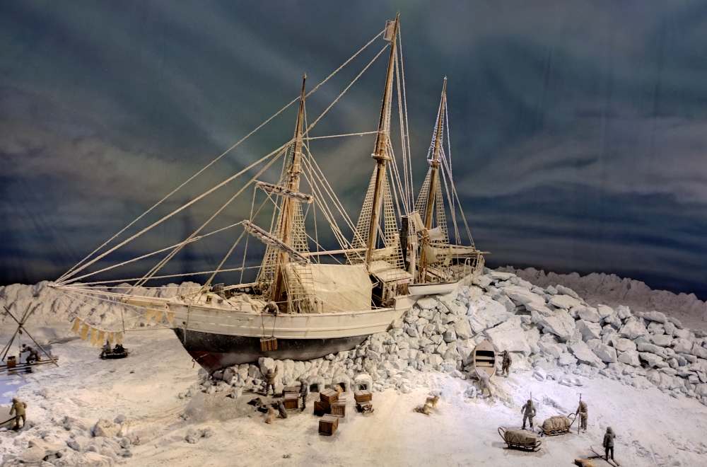 Die Fram hat Jahre später auch Roald Amundsen auf seiner erfolgreichen Südpolexpedition zur Antarktis gebracht. Auch zu dieser Expedition sind viele interessante Informationen und Exponate zu sehen.