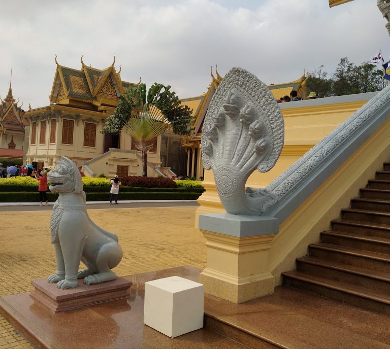 Der Bus hatte uns gestern gut in die Hauptstadt Kambodschas gebracht. Nach einer Besichtigung des Historischen Museums, wo viele Exponate aus Angkor ausgestellt sind, haben wir abends noch den Pool auf der Dachterrasse des Hotels genossen und gechillt.