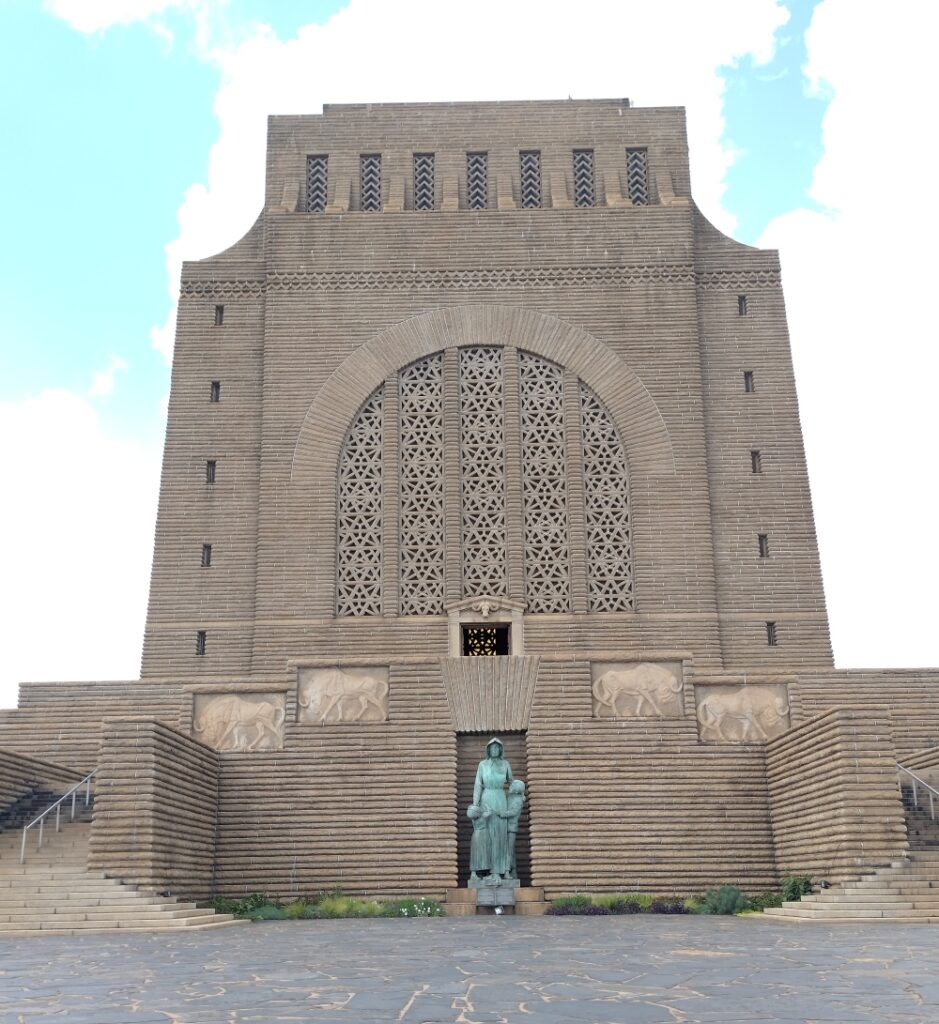 Anschließend besichtigten wir das Denkmal für die Voortrekker. So wurden die Buren genannt, die aus der Kapregion von den Engländern vertrieben wurden und nach Nordosten zogen, um neue Siedlungsgebiete zu finden. Sie ließen sich im Gebiet des heutigen Pretoria nieder. Der Name der Stadt wurde von ihrem Anführer Marthinus Wessel Pretorius nach seinem Vater benannt. Die Gestaltung des Denkmals ist unter anderem vom Völkerschlachtdenkmal in Leipzig beeinflusst. Es enthält eine Ausstellung zum Leben der Siedler.