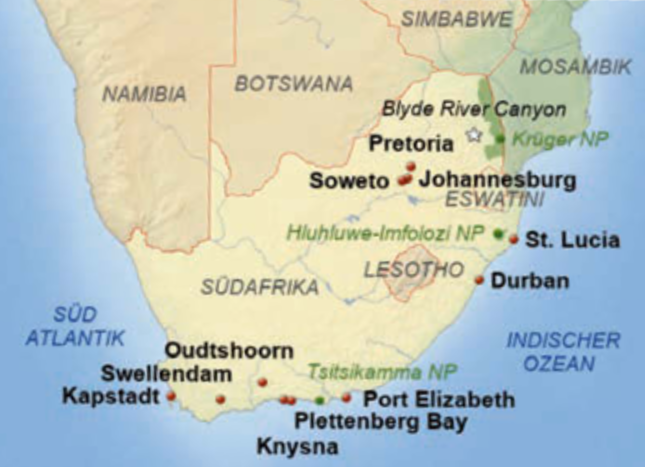 Am Freitag verließen wir die Panorama-Route und fuhren in die Hauptstadt nach Pretoria. Dort besuchten wir noch am Nachmittag das Parlamentsgebäude mit dem Denkmal für den ersten demokratisch gewä...